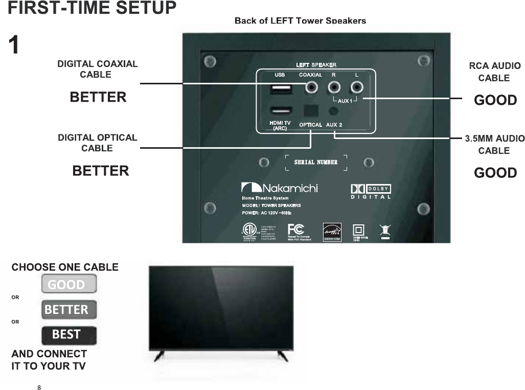 Speakers directly to yourother devices(Blu-Ray player,game system,etc.)see