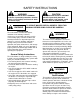 Thrown objects can pass through glass windows and some walls of buildings. There is extreme risk of danger from thrown objects or being cut by the blades of the mower or being run over if you lose control. Never operate the mower in an enclosed area without good, approved ventilation. Exhaust fumes are dangerous. • • WARNING Initial Operating Safety Guidelines • Read and understand the warning on the instrument panel of the mower. • Keep a firm hold on the handles at all times.