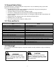 Fuel System • • • • Capacity: 5.6 Gal. (L) Type of Fuel: Unleaded regular gasoline, minimum 85 octane. Do not use gasoline containing more than 10% ethanol. Do not mix oil with gasoline. Fuel Filter: In line Fuel shut off: On, Off located on fuel tank Safety Interlock System • • PTO switch must be disengaged, brake engaged and the control handles in the neutral and locked position to start the engine. Operator must have feet on the platform to engage the PTO and brake off or engine will stop.