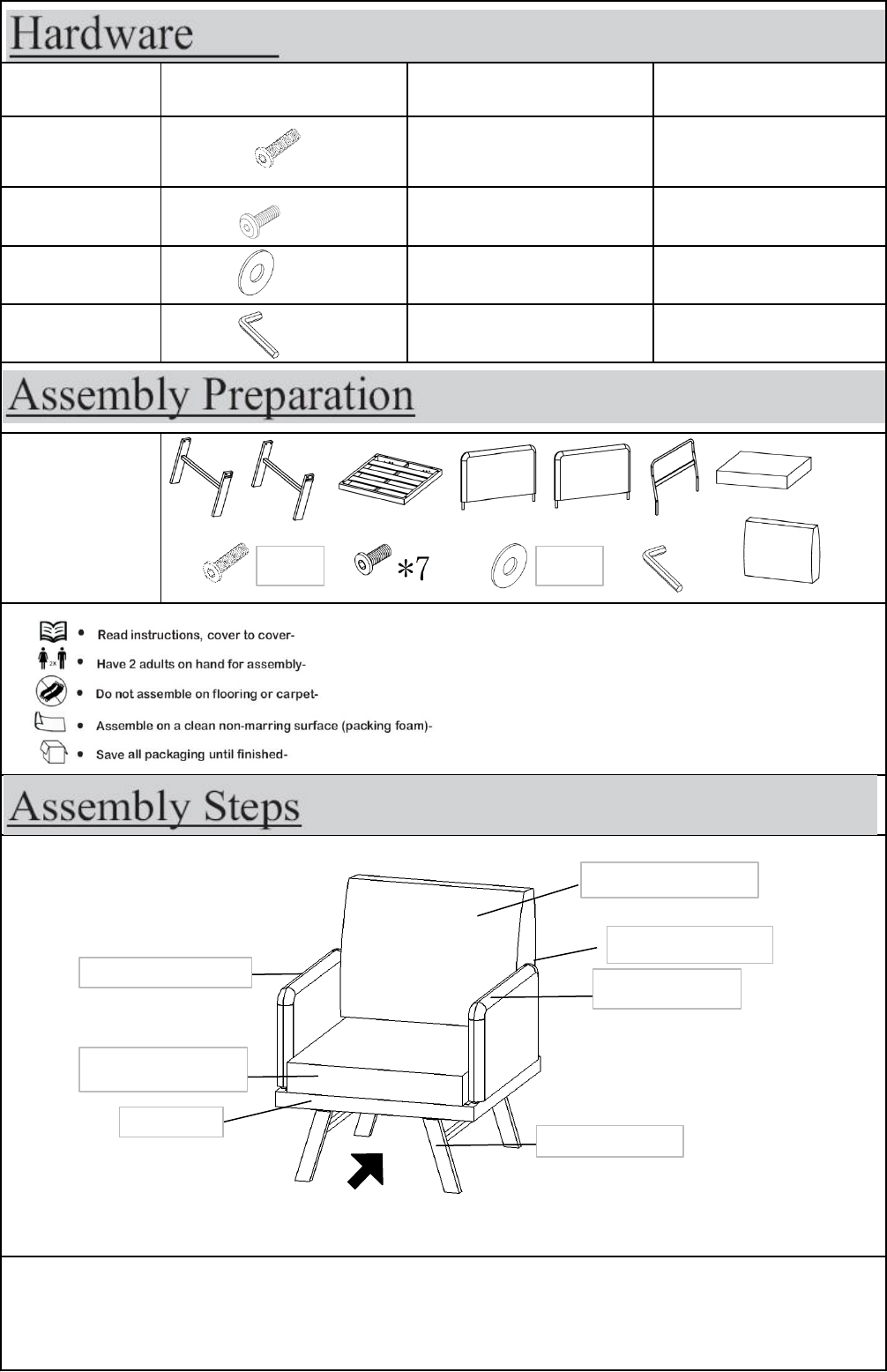 overview of the Chair parts, the above picture is to help you put the various parts into