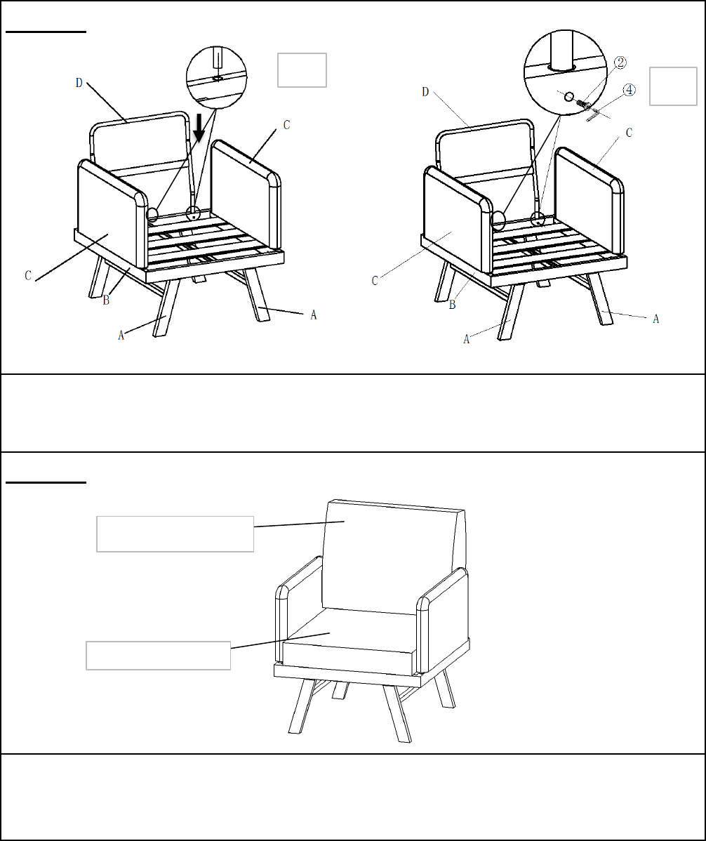 5.1Insert Backrest(D) to Seat(B) as show above