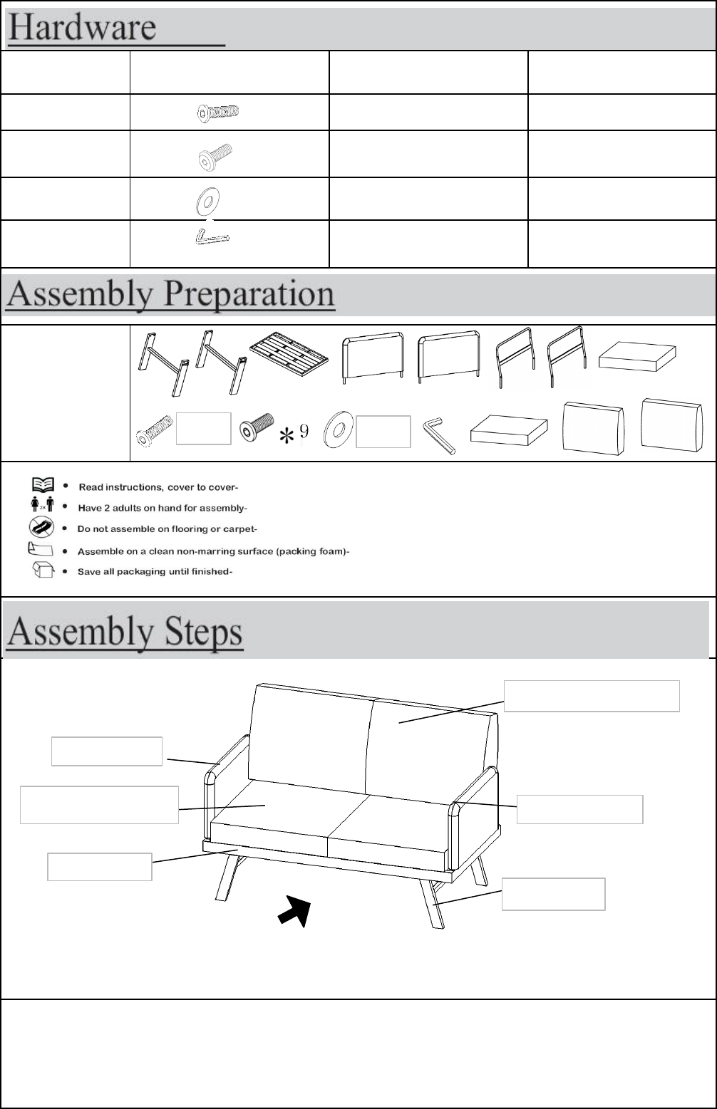 an overview of the Loveseat parts, the above picture is to help you put the various parts into