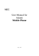 N5603‘s usermanual To continuous improvement for the product, the mobile phone type and attached parts’ specification may be modified partly or completely, please forgive not to inform for it. If the content described in this manual does not conform to your mobile phone, please take your mobile phone as the standard. NEC possesses the right to give the final explanation fro this instruction manual. NEC reserves the right to modify the technical rules and give no beforehand informing.