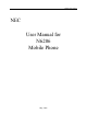 N6206 User manual Commission on Non-ionizing Radiation Protection). These limit standards contain lots of security capacity so as to keep person safe, whatever the age or health status, and also consider the changeable factors of various kinds of measure condition. If the content described in this manual does not conform to your mobile phone, please take yours as the standard. NEC possesses the right of the final explanation for this instruction manual.