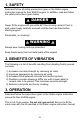 1. SAFETY Read and follow all safety precautions given in the Robin engine instruction manual for their EH035 engine. In addition, read and follow the safety instructions given below: DANGER ! ! Never fill the engine with gas while EZ Vibe is being carried. If fuel is spilt, wipe it away carefully and wait until the fuel has dried before starting engine! Flammable, no smoking! ! WARNING ! Always wear hearing and eye protection! Keep hands away from hot metal parts of the engine! 2.