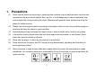 1. Precautions (1) Never use the player during driving or operating other vehicles to avoid traffic accident, which is also restricted by the law in some districts. Even on foot, it is still dangerous to listen in extremely high volume especially during crossing the street. Wherever with potential risks, please stop using the player for safety purpose. (2) Please insert the earphone before powering on the player, which can not only avoid damaging the earphone but keep the player in good condition.