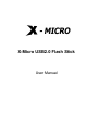 CONTENTS Introduction 1.1 1.2 2 Introduction of X-Micro USB2.0 Flash Stick 2 1.1.1 The main capability index 2 1.1.2 X-Micro USB2.0 Flash Stick overview 2 1.1.3 Connection with computer 2 The system requirement of X-Micro USB2.0 Flash Stick 1.2.1 Requirement for computer 3 3 1.2.2 Requirement for operation system 3 1.2.3 Requirement for the main controller of USB 3 Install application program 3 X-Micro USB2.0 Flash Stick application 5 3.1 Windows 98/Me/2000/XP 5 3.2 Mac OS 9.