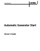 About This Guide Purpose The purpose of this Owner’s Guide is to provide explanations and procedures for installing, operating, maintaining, and troubleshooting the Automatic Generator Start. Scope The Guide provides safety guidelines, detailed planning and setup information, procedures for installing the Automatic Generator Start, as well as information about configuring, operating and troubleshooting the unit. This guide does not provide information about choosing a generator or operating a generator.