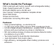 What’s Inside the Package: PSD3 solar light with built-in camera and rechargeable battery Solar charging panel with 15’ cable DVR with adapter and a 2G SD card User manual, including installation template sticker Quick Start Guide Screws and anchors Audio/video connecting RCA cable Features: • Solar-powered lighting—no electricity bill • 2 x 5W super bright LEDs (equal to 60W incandescent bulb) • 2.