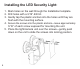 Installing the LED Security Light: 1. Mark holes on the wall through the Installation template. 2. Drill holes with a 3/16” drill bit. 3. Gently tap the plastic anchors into the holes until they are flush with the mounting surface. 4. Secure the screws into the plastic anchors—leave approximately 3/16” of each screw exposed for mounting the unit. 5. Place the light/camera unit over the screws—gently push down on the unit to slide the screws into locking position.