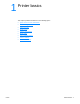 1 Printer basics This chapter provides information on the following topics: ENWW ● Quick access to more information ● Printer configurations ● Printer features ● Walk around ● Printer control panel ● Media paths ● Print cartridge access ● Printer software ● Printer connections Printer basics 1