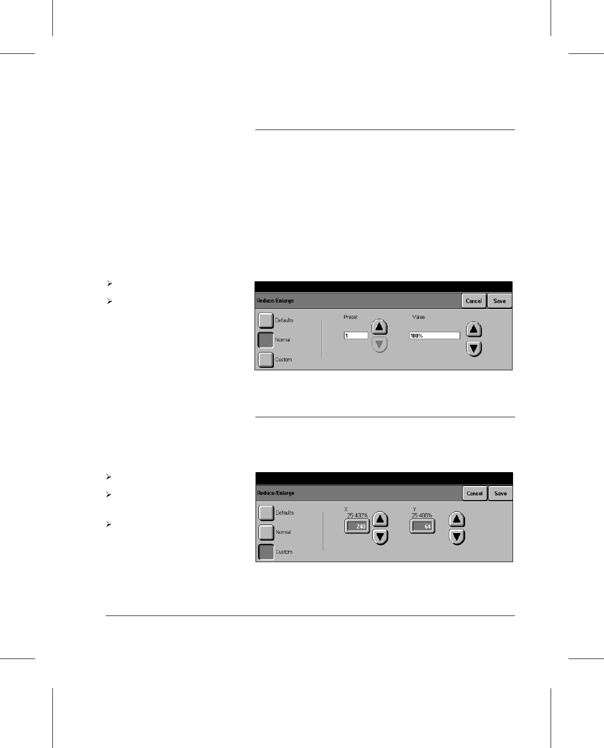 The Custom settings are used to reduce or enlarge