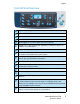 English 17 ‘C’ Cancel Entry: Cancels the previous entry made on the keypad. 18 Keypad: Use to enter alphanumeric characters. 19 20 21 22 23 Interrupt Printing: Use to interrupt the current job to run a more urgent job. Clear All: Press to clear the last selections made. Power Saver: Sends the machine into power saver mode or power down. Press the button again to restart a powered off machine. Stop: Pressing the Stop button once displays a confirmation message but does not stop the machine.