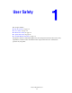 User Safety This chapter includes: ■ ■ ■ ■ ■ Electrical Safety on page 1-2 Laser Safety on page 1-4 Maintenance Safety on page 1-5 Operational Safety on page 1-6 Symbols Marked on Product on page 1-9 Your printer and the recommended supplies have been designed and tested to meet strict safety requirements. Attention to the information in this chapter will ensure the continued safe operation of your printer.