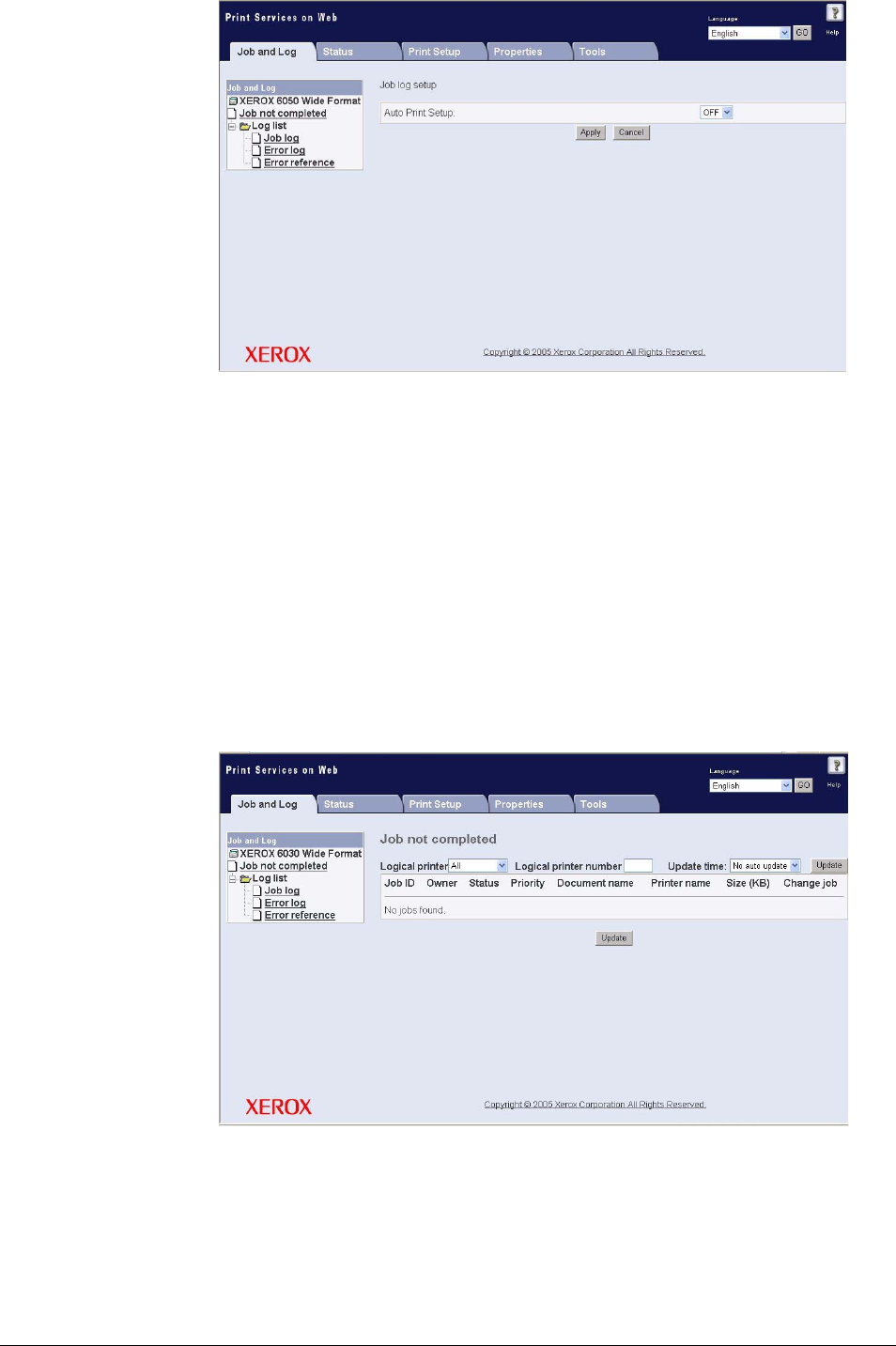 2 Select [Job Log] from the [Log list] menu. The job log will display in the