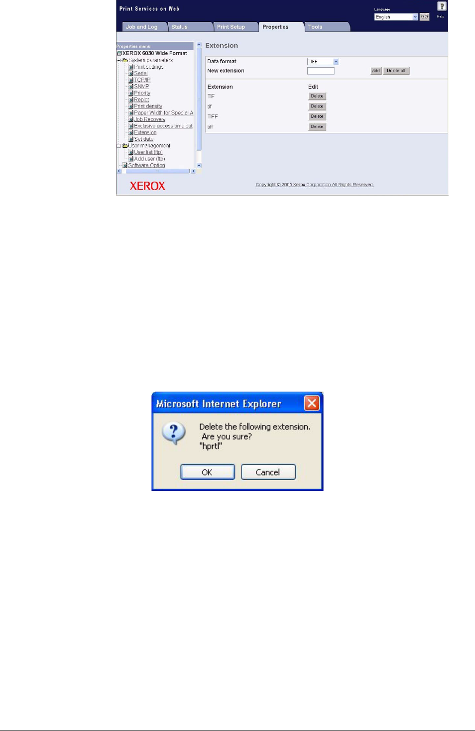 To delete an extension, click the [Delete] button. Click [OK] or [Cancel] on