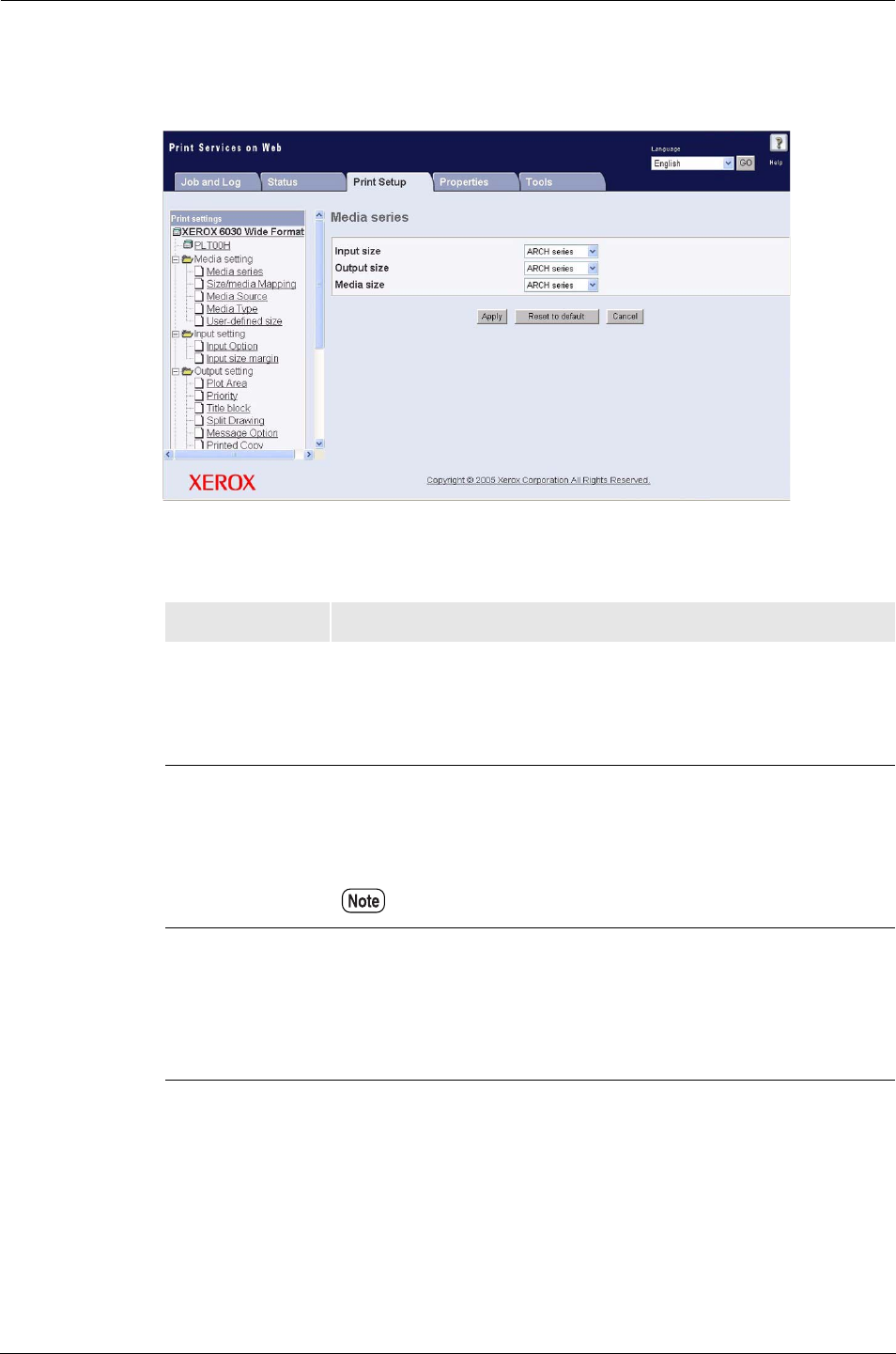 Output size Sets up the media group for determining the output size.