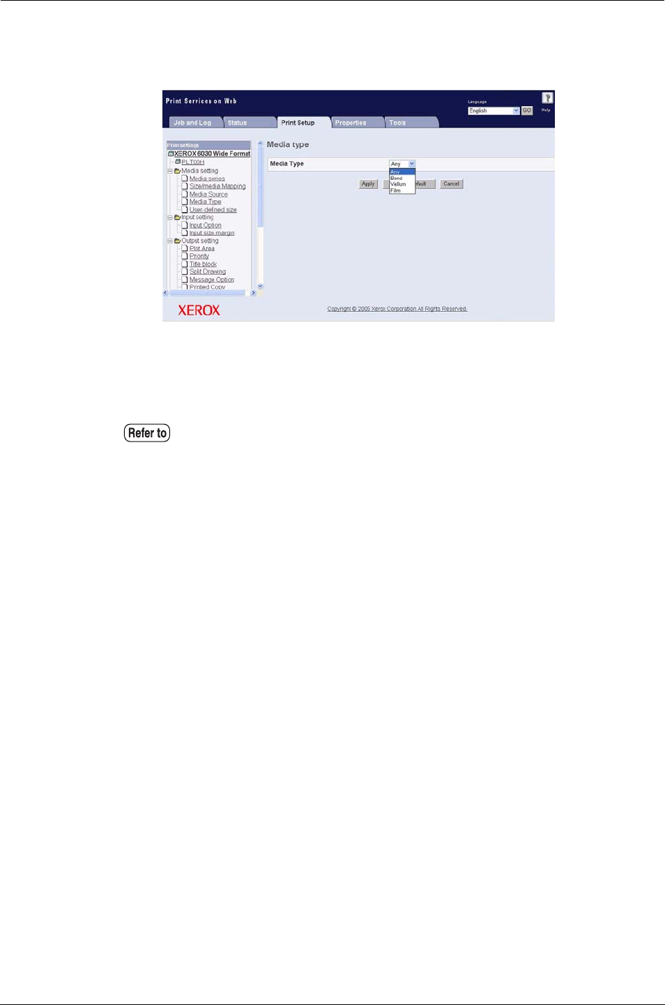 The media type for the logical printers is set up using the [Media Type] selection.