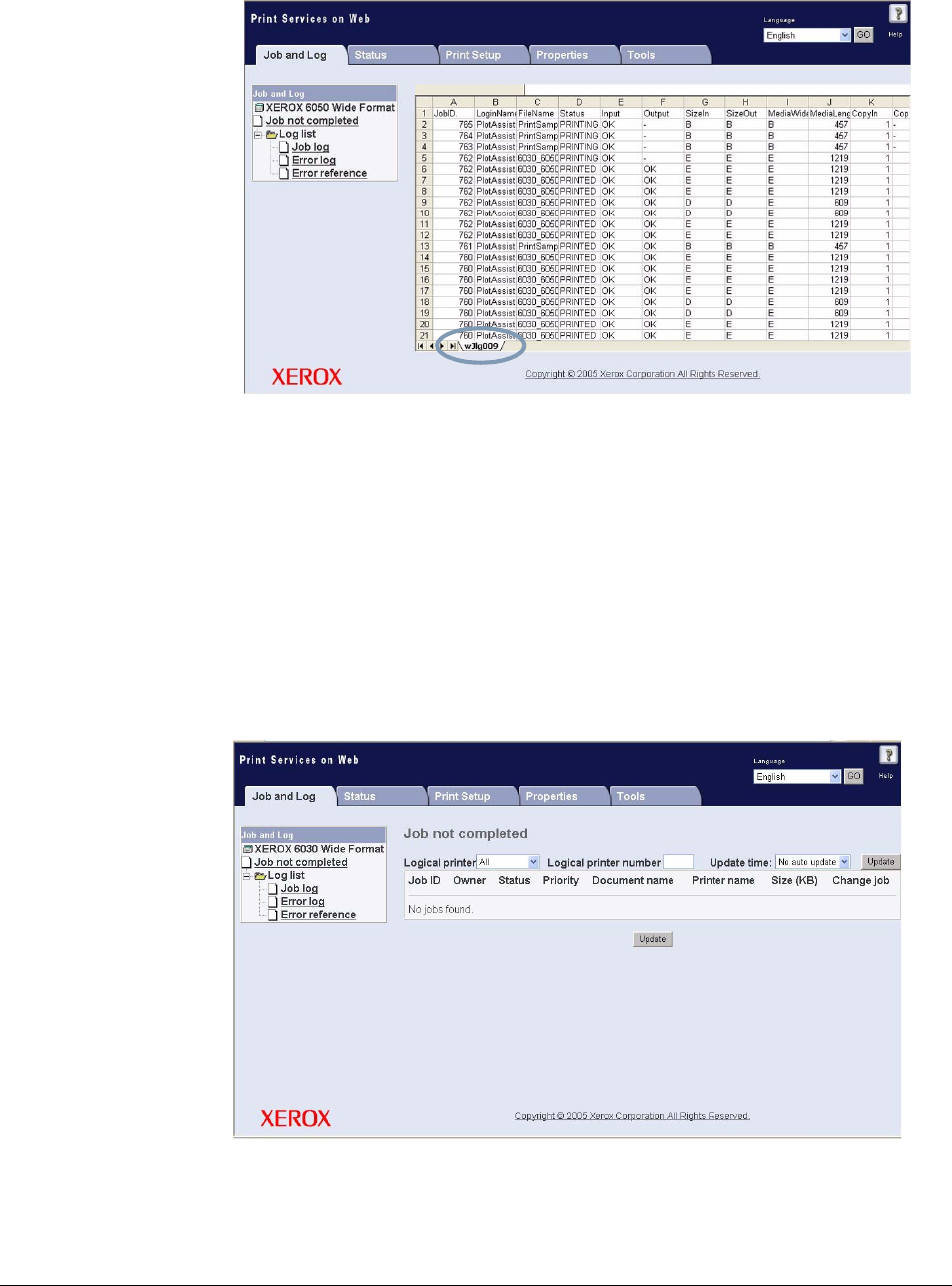 1 Start Print Services on Web and display the [Job and Log] tab on either