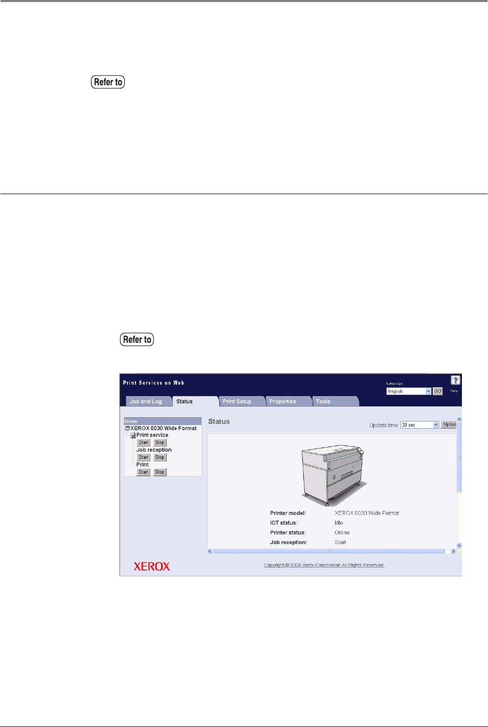 Refer to "2.3 Print Services on Web (6030/6050)" for details on starting
