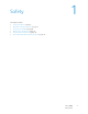 Safety 1 This chapter includes: • Safety Introduction on page 8 • Operational Safety Information on page 9 • Emergency Power Off on page 10 • Maintenance Information on page 11 • Product Safety Certification on page 12 • Environmental Health and Safety Contacts on page 13 Xerox 7600i User’s Guide 7