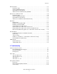 Index front panel connection setup, 3-2 contrast, 1-19 display, 1-9 displaying errors, 1-8 errors and warning messages, 4-32 graphic display, 1-7 i button, 4-2 list fonts, 1-21 Menu Map, 1-9 print icon, 1-9 printer language, 1-19 prompts, 2-64 setting up the IP address manually, 3-3 status messages, 2-64 verifying IP address, 3-7 warnings, 2-64 G Genuine Xerox Solid Ink 8400 use of other types of ink, 2-64 getting help infoSMART, 1-6 PhaserSMART, 1-6 Technical Support, 1-6, 1-13 graphic arts applications,
