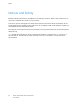 Safety Printer Location • • • • • • • • • • Place the printer on a level, solid, non-vibrating surface with adequate strength to hold its weight. To find the weight for your printer configuration, refer to Physical Specifications on page 172. Do not block or cover the slots or openings on the printer. These openings are provided for ventilation and to prevent overheating of the printer. Place the printer in an area where there is adequate space for operation and servicing.