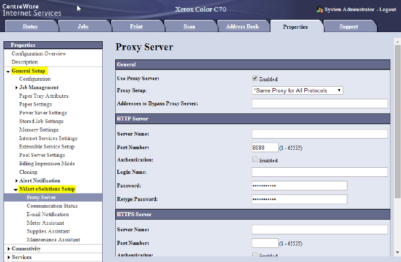 1. In CentreWare Internet Services, access Properties > General Setup > SMart