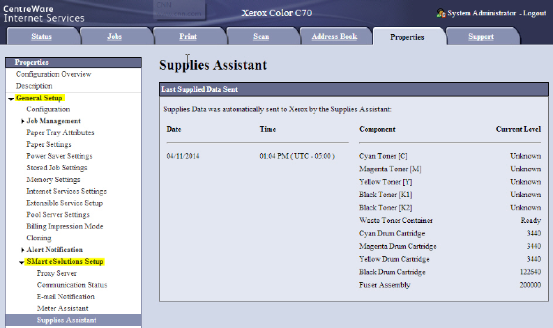 1. In CentreWare Internet Services, access Properties > General Setup > SMart