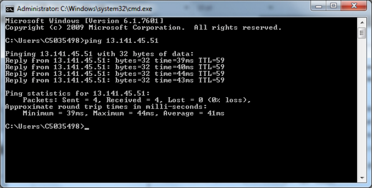 At the prompt, type ping followed by a space and the IP address of the proxy server.