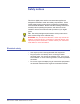 S af et y n o ti c e s WARNING: You may incur a severe electrical shock if the outlet is not grounded correctly. • Do not place the press where people may step or trip on the power cord. Do not place objects on the power cord. • Do not override or disable electrical or mechanical interlocks. • Do not obstruct the ventilation openings. These openings prevent overheating of the machine. WARNING: Never push objects of any kind into slots or openings on this equipment.