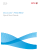 Preface Welcome to the Quick Start Guide This guide is designed to help you quickly begin using your new DocuColor 7002/8002 Digital Press. The information in this guide will help you load paper, print a file from your print server and check the status of critical machine data. For additional details and information, refer to the DocuColor 7002/8002 Digital Press User Guide. This guide consists of the following exercises: • • • • • • • Exercise 1. Locating the major components of your system Exercise 2.