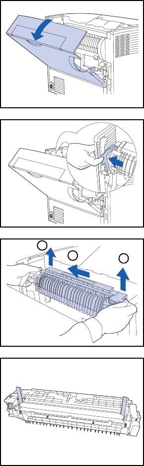 Hold the fuser tabs with both hands as shown and remove
