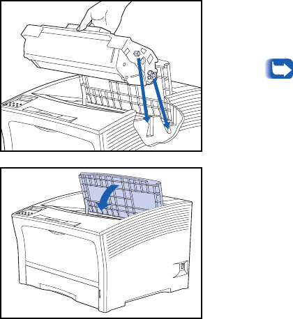 Holding the laser print cartridge as shown, lower it into