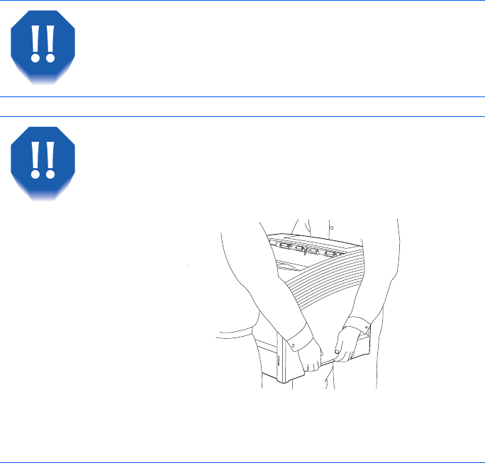 Never attempt to lift the printer by yourself. To lift