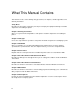 Table of Contents Introduction ...........................................................................................................................i What This Manual Contains.................................................................................................ii Manual Conventions ...........................................................................................................iv Safety Notes..........................................................................................