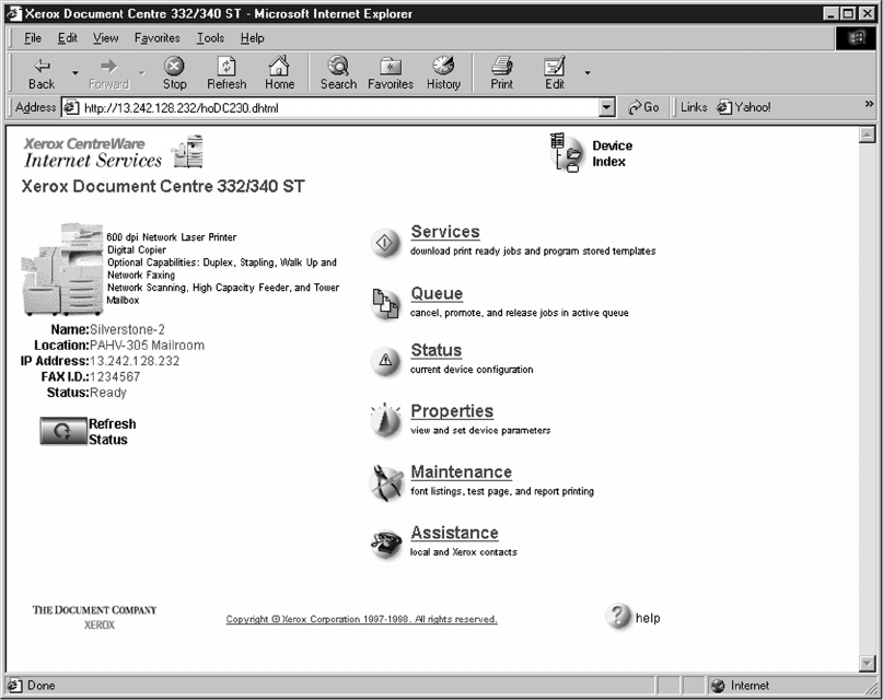 Configuring a Document Centre 220/230/332/340/432/420/425/432/440 with Centreware Internet Services