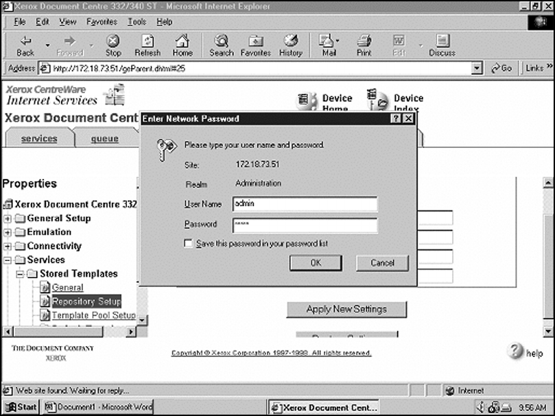 Configuring a Document Centre 220/230/332/340/432/420/425/ 432/440 with Centreware Internet Services