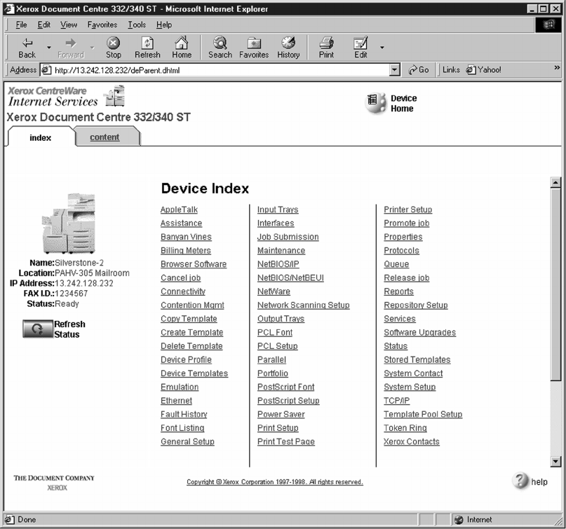 Configuring a Document Centre 220/230/332/340/432/420/425/432/440 with Centreware Internet Services