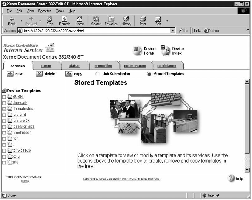 Configuring a Document Centre 220/230/332/340/432/420/425/ 432/440 with Centreware Internet Services