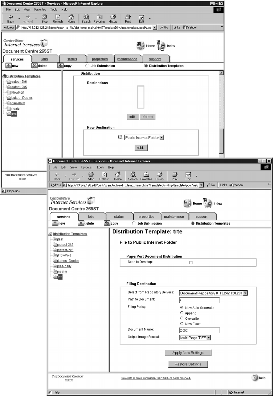 Configuring a Document Centre 240/255/265/460/470/480/490 with Centreware Internet Services