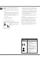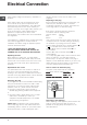 Electrical Connection GB Power supply voltage and frequency: 220-240V a.c. 50/60Hz. ! The supply cable must be positioned so that it never reaches at any point a temperature 50°C higher than the room temperature. The cable must be routed away from the rear vents. Should you require it, you may use a longer cable, however, you must ensure that the cable supplied with the appliance is replaced by one of the same specifications in accordance with current standards and legislation. rating of 45 amp.