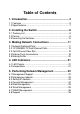 Table of Contents 1. Introduction ......................................................... 4 1.1 Features ............................................................................... 5 1.2 Specifications ....................................................................... 7 2. Installing the Switch ........................................... 8 2.1 Packing List ......................................................................... 8 2.2 Panels ......................................................
