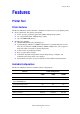 B–Printer Specifications (English Only) Relative Humidity Storage (in original packaging): 10% to 90% Operating: 20% to 80% Electrical Specifications Available in two models: 110-127 VAC, 50/60 Hz 220-240 VAC, 50/60 Hz Performance Specifications Resolution 300 x 300 dpi 600 x 600 dpi 1200 dpi Image Quality Print Speed Up to 35 pages per minute (ppm) Fuser Life Maximum 150,000 pages Controller Specifications 400 MHz processor Memory 32 MB standard on all printers Maximum