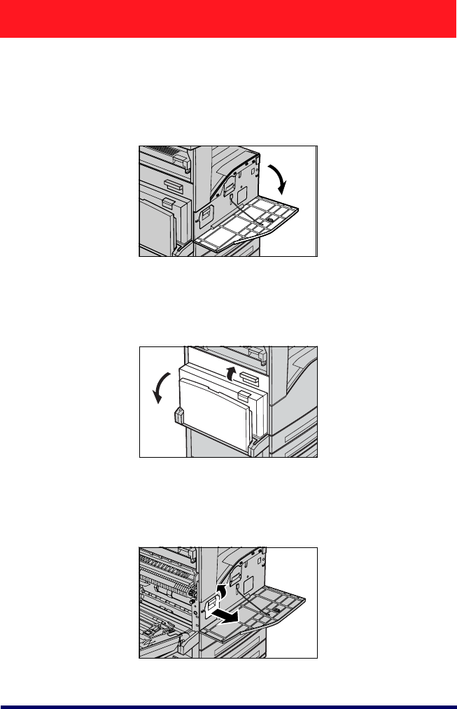 2. Open Tray 5 (Bypass) and then Cover A while lifting up the release