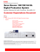 Xerox Nuvera® 100/120/144 EA Digital Production System - Customer Expectations Document Print From Digital File Configuration Re-print Job Formats (from DVD/CD) Comments Digital Production System • • • • • • • • − Single TIFF Multi-page TIFF PPML PCL PostScript PDF Saved Single Page TIFF ASCII Saved Single Page TIFF file is the Save operation performed in FreeFlow™ DocuSP® when selected to save as single TIFF. This file contains PostScript that will require PostScript license to print the file.
