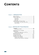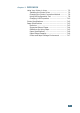 CONTENTS Chapter 1: INTRODUCTION Special Features .................................................. Printer Components ............................................. Front View ..................................................... Inside View .................................................... Rear View ...................................................... 1.2 1.4 1.4 1.5 1.5 Understanding the Control Panel ............................ 1.6 On Line/Error and Toner Save LEDs .................. 1.