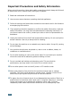 Important Precautions and Safety Information When using this machine, these basic safety precautions should always be followed to reduce risk of fire, electric shock, and injury to people: 1 Read and understand all instructions. 2 Use common sense whenever operating electrical appliances. 3 Follow all warnings and instructions marked on the machine and in the literature accompanying the machine. 4 If an operating instruction appears to conflict with safety information, heed the safety information.