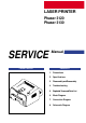 LASER PRINTER Phaser 3120 Phaser 3130 SERVICE LASER PRINTER Manual CONTENTS 1. Precautions 2. Specifications 3. Disassembly and Reassembly 4. Troubleshooting 5. Exploded Views and Parts List 6. Block Diagram 7. Connection Diagram 8.