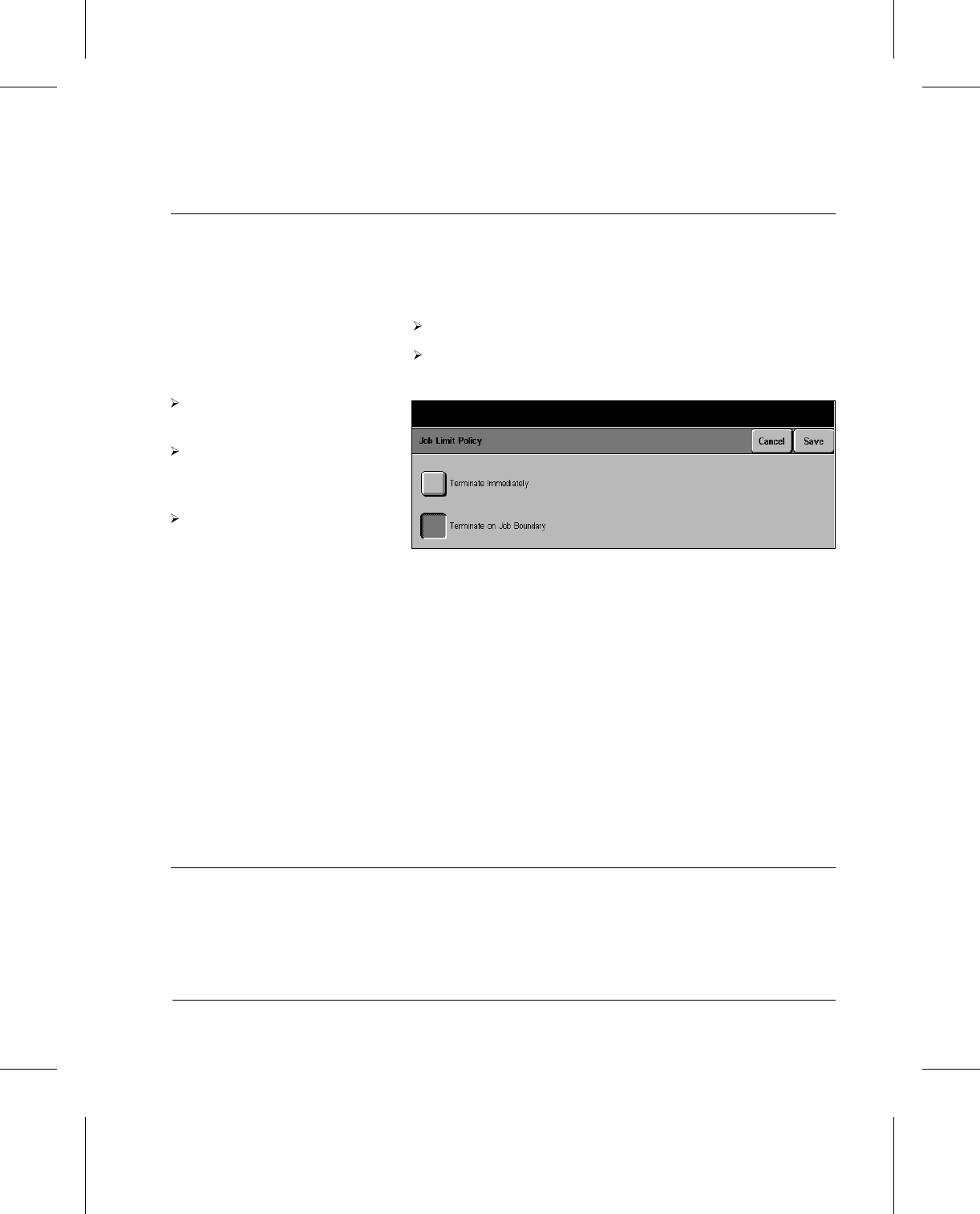 Terminate on Job Boundary the machine allows the current job to be completed. No